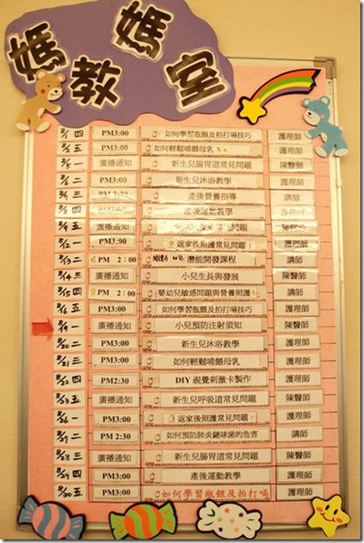 為了不讓媽咪有坐月子像坐牢的不暢快,其實每天都有安排媽媽教室課程可以上
