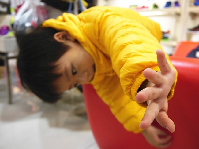 下圖完全就是處於一個非常努力要拉起拉鍊~整個很堅持的孩子