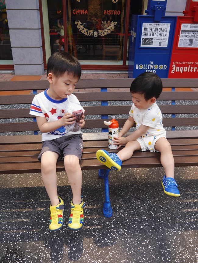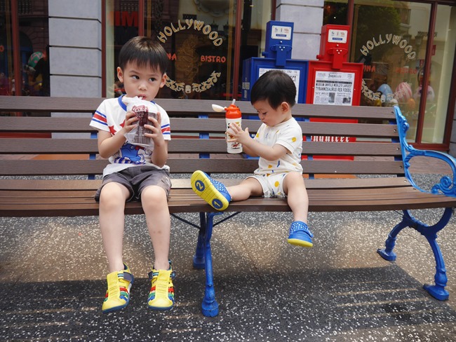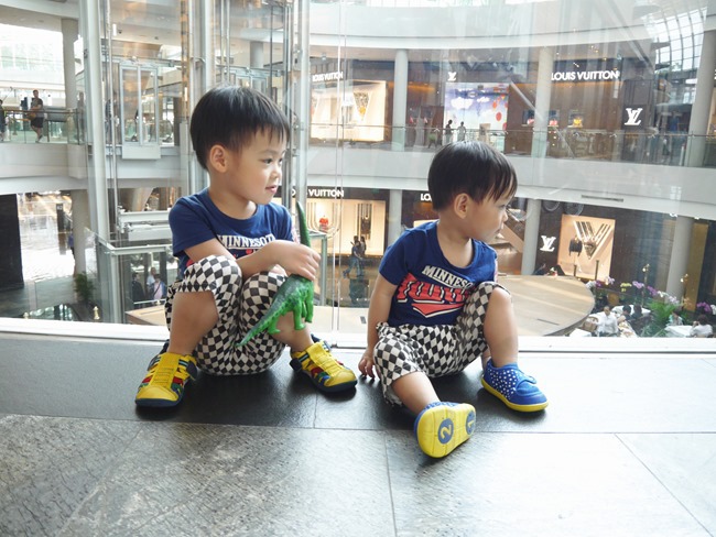 到底是誰在陪誰丫?!這樣媽媽是要怎麼好好逛個街~兩寶累了還席地就坐…有夠隨意