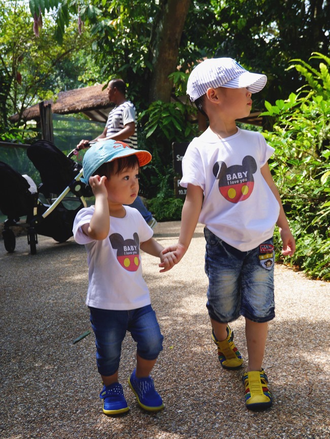 兩寶直接穿著IFME飛往近30℃高溫的新加坡提前繽紛迎夏囉!