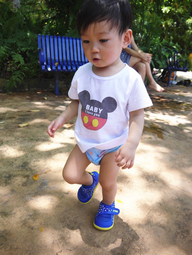 直到後來走路較有所進步,再進階改穿學步鞋…