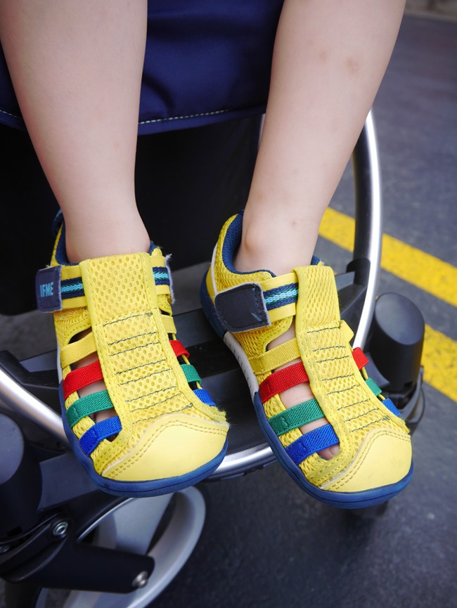 因為這年紀的小孩活動量之大,我多半挑選可以包住腳的包鞋為主