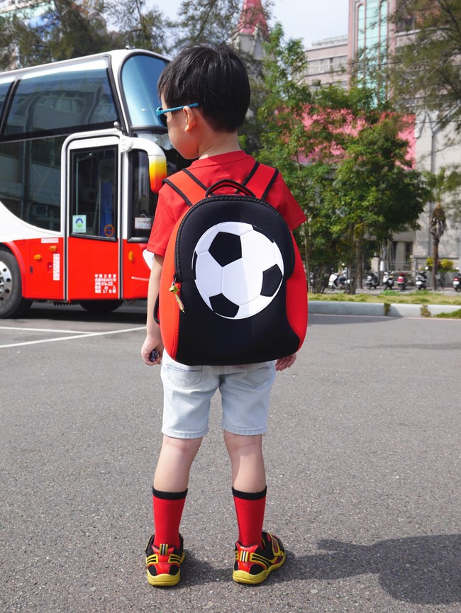 幫哥哥挑的這款【足球】後背包媽媽個人覺得帥到翻掉,記得每次幫兩寶買衣服或是玩具,永遠都被黃爸唸我不懂男生