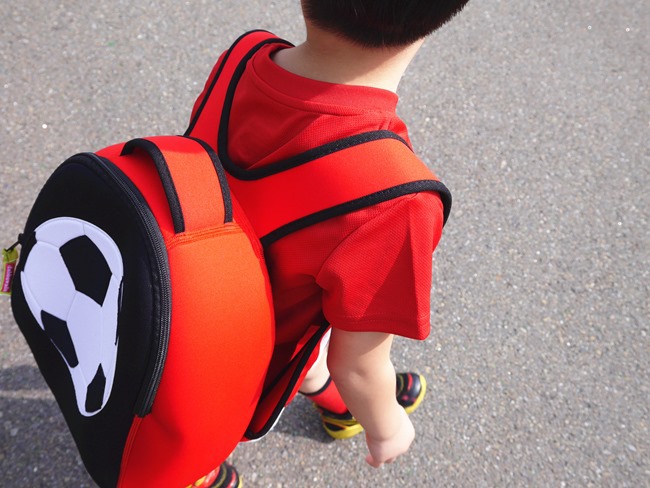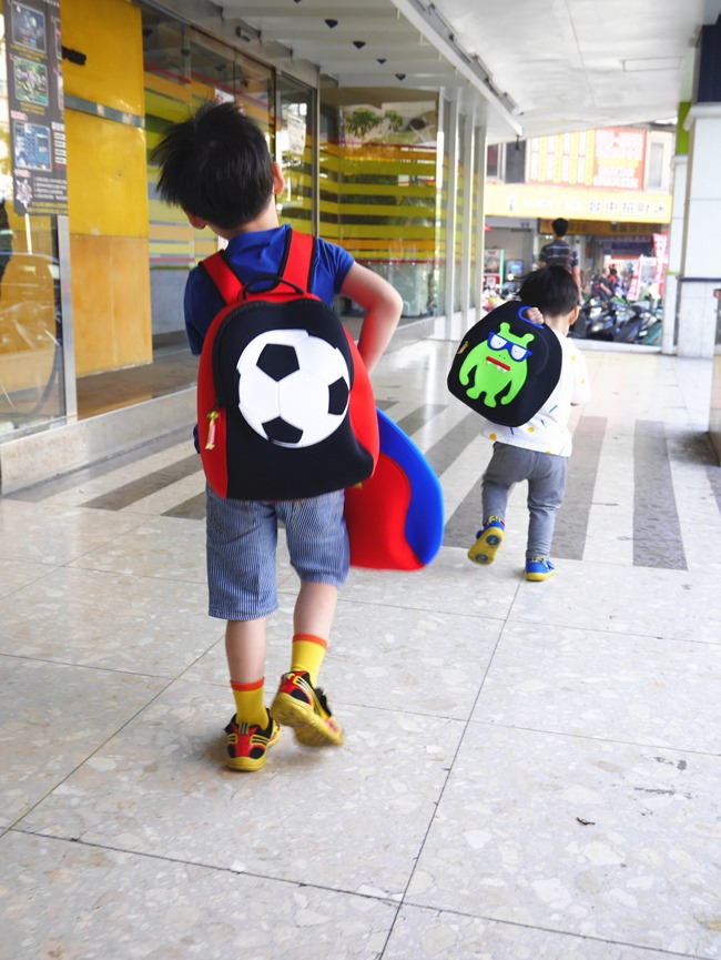 覺得像是足球、火劍、賽車…就超適合一路背到大童,從肩帶到包體~都是潛水布~哥哥超喜歡我幫他挑的足球包!!