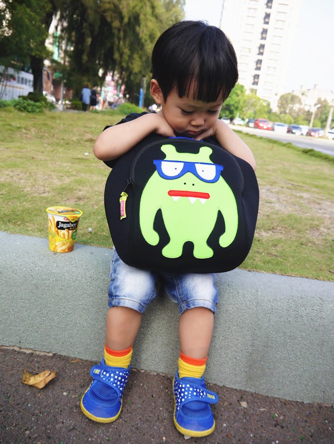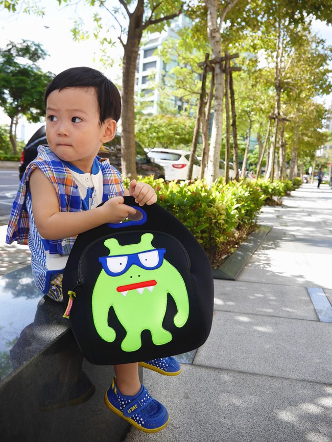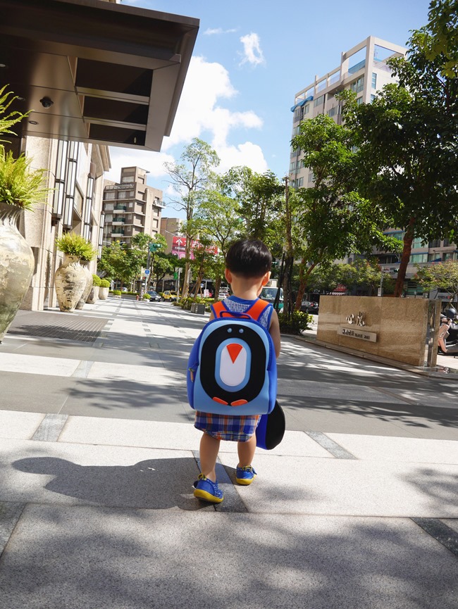 裡頭塞了水壺和紙巾迷你寶可以背著走完到哥哥學校約半小時的路程哦