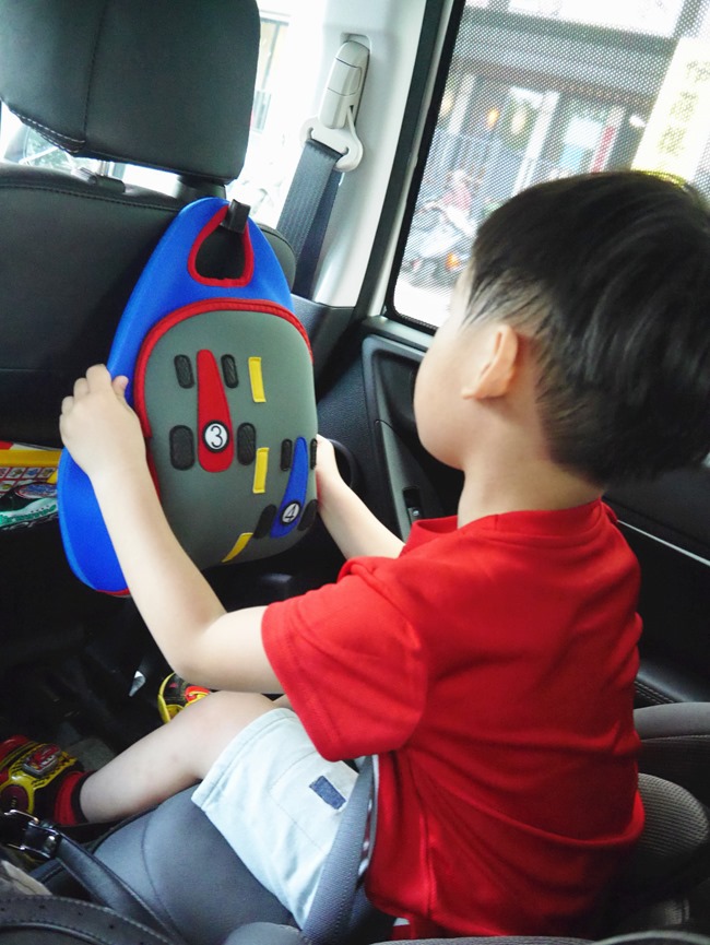 賽車當然是車車控哥哥特別指定無誤~掛在後座掛勾面對面真的是相看兩不厭丫!