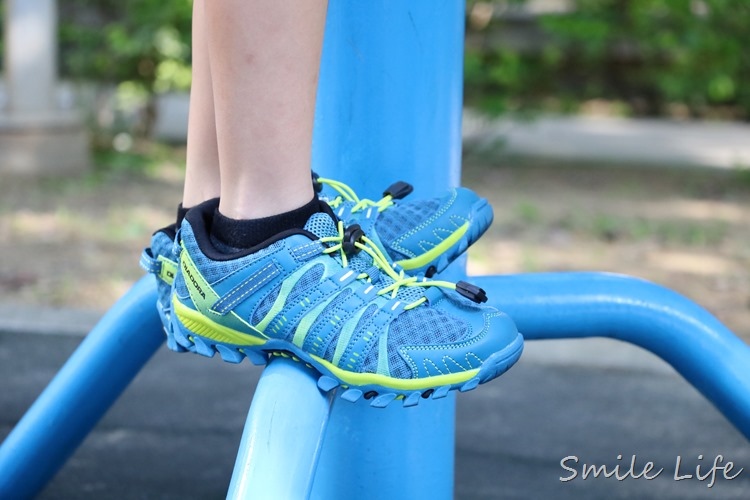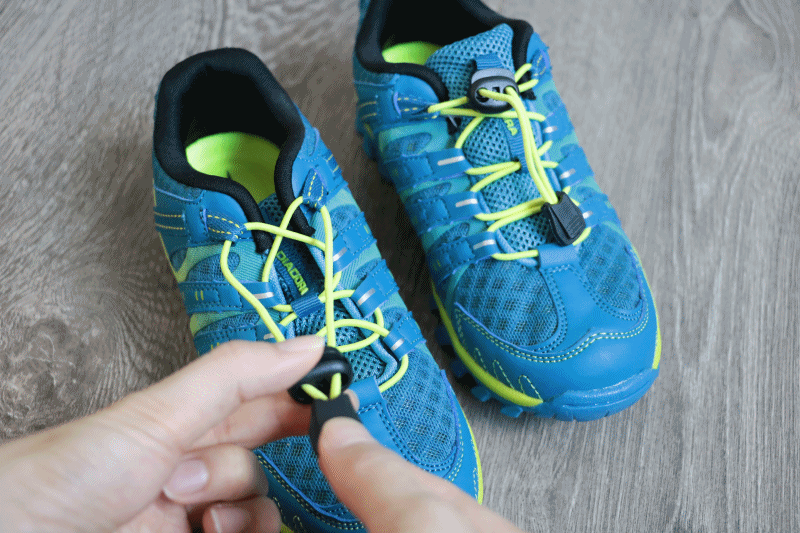按壓型抽繩鞋帶小孩穿脫也很方便~~如果擔心帶子太長影響活動就可以把繩帶往內塞