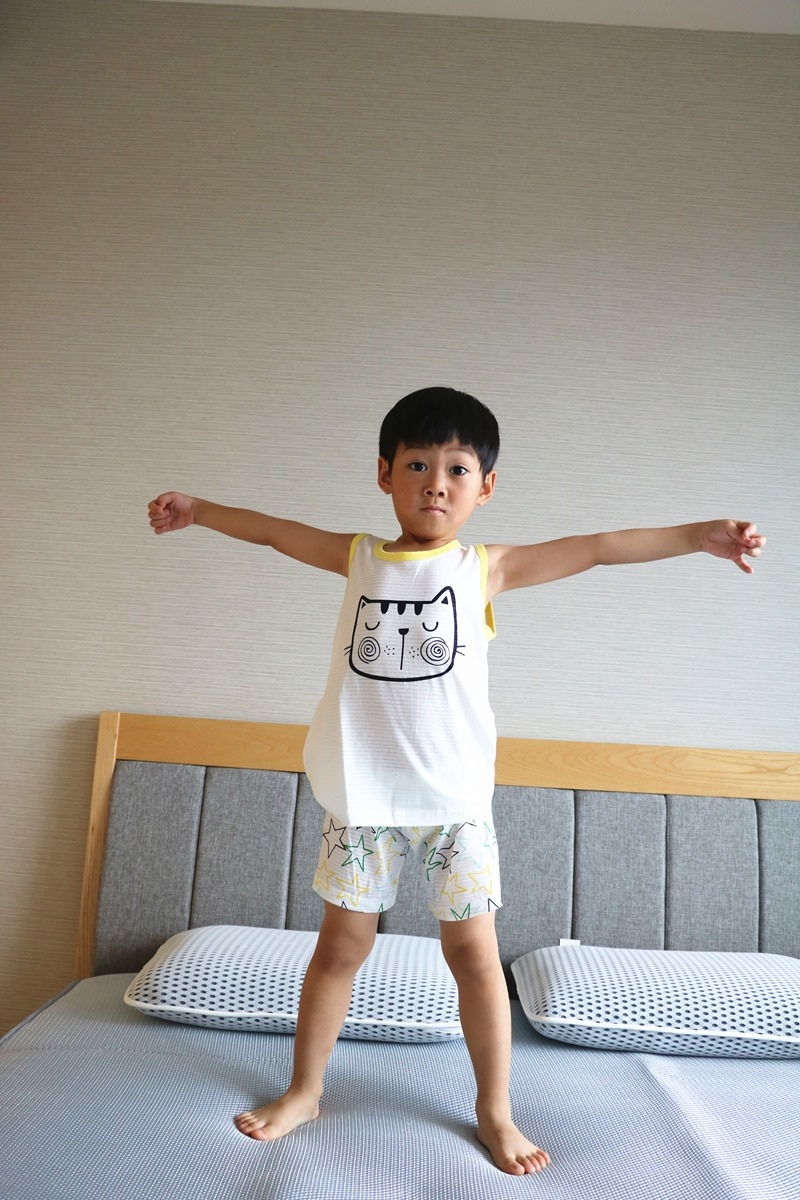 家居服稍寬鬆其實對體燥且活動量大的小孩來說,會更舒服些哦