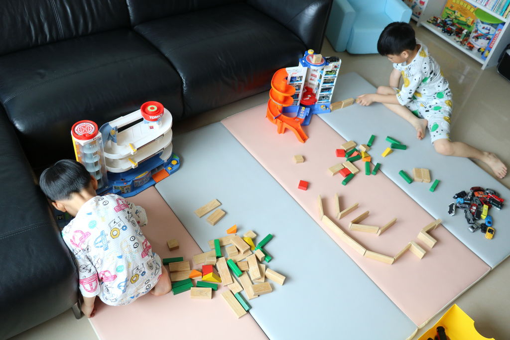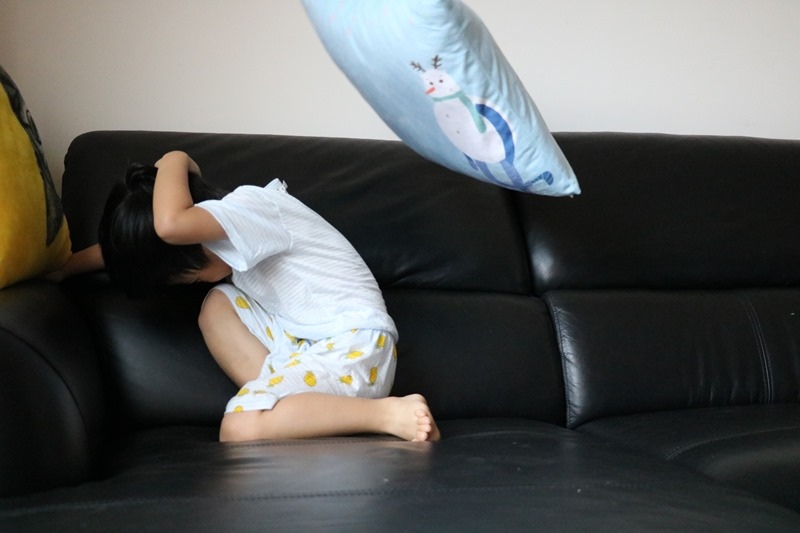 然後在家就是沙發、床彈跳不停,家裡抱枕、枕頭~一直處於一個滿天飛的狀態呀