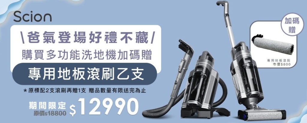 【Scion無線洗地機】 從往年團價13,500,下殺這次一台只要12,990含運!再加碼【贈送一支專用滾刷】(含原配會共有三支滾刷哦),觀望洗地機很久的朋友們~全年最不能錯過的兩個重要時節!即日起至~8/15止 早入坑打掃早輕鬆、毫不費力省時又乾淨!特別是家有愛光腳丫地板踩的小孩、本人又嚴重潔癖每天地板吸拖N趟節奏,當初見姐妹從家中邊櫃推出洗地機,俐落將地板汙漬三兩下嚕得乾乾淨淨,窩的天~太帥!比起傳統先吸再彎腰賣力拖,拖布清洗好幾趟的打掃日常,家有「洗地機」真的加備倍乾淨又輕鬆省力,「洗地」真的比一般傳統拖地更啵兒亮又乾爽!可站立收納充電、自動牽引帶動前進非常輕鬆、也有自動滾刷清潔功能,無論地板、窗台溝縫、沙發、玻璃、浴室…每個配件表現都令人非常滿意呀!外型又具高品味