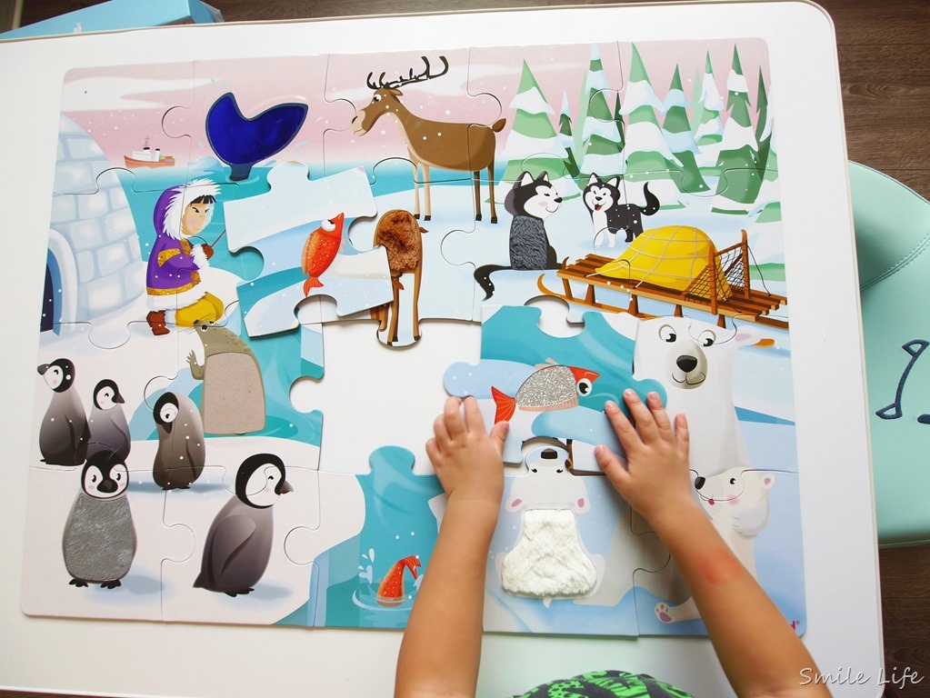 而且每塊大拼圖都是非常堅厚耐用的硬紙板,小手拿取方便,更增加成功拼接提升樂趣