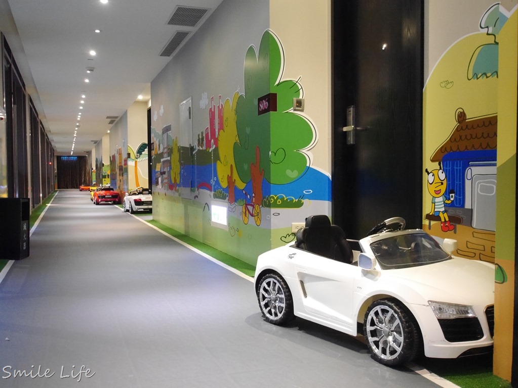 精心打造的芬朵奇堡主題樓層,將房間廊道設計為兒童汽車專屬跑道