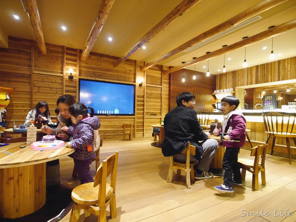 除了有孩子遊戲跟圖書空間,以及免費的咖啡飲品、果汁、餅乾無限供應