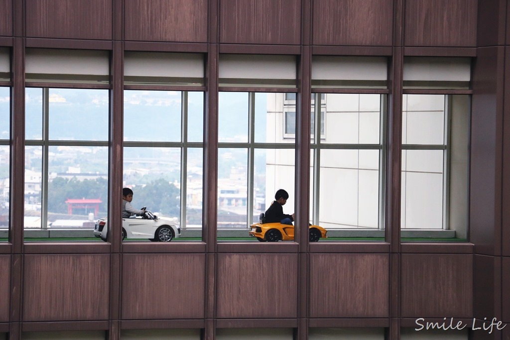 就在兩個寶貝退房前又奔回廊道繼續未完的賽車夢,畫下這次旅行圓滿的回憶