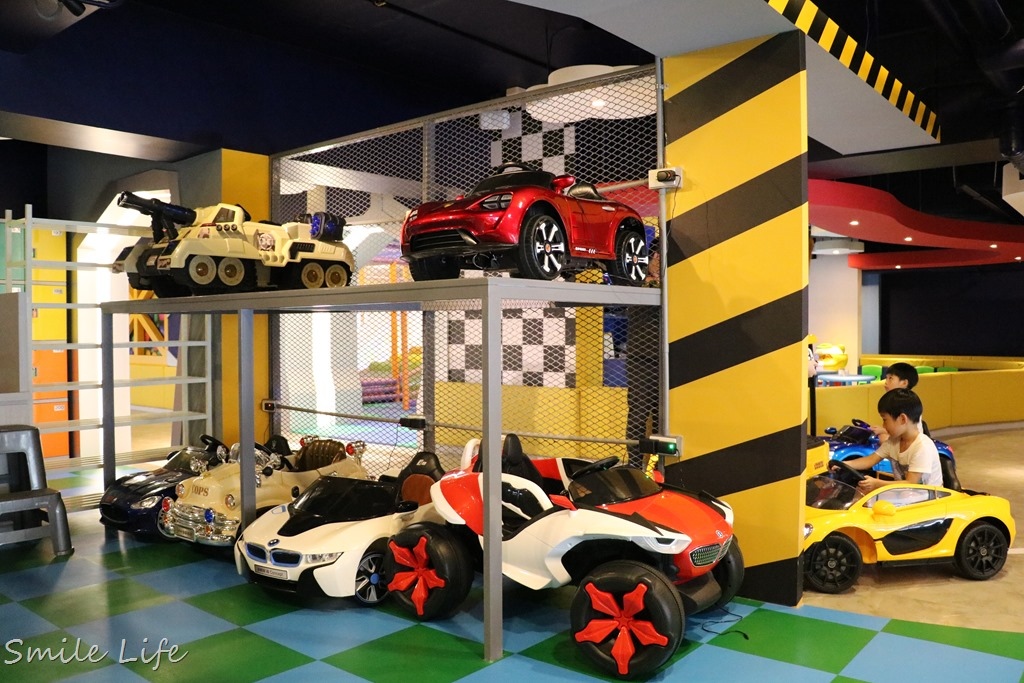 從地下停車場搭電梯上樓,立馬被兩兒雷達掃到小朋友最歡樂的「Cars卡茲童樂園」