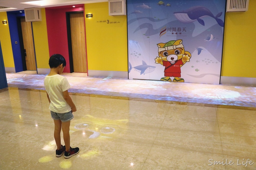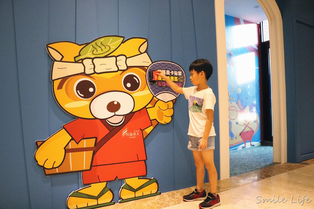 一上樓,就有迎賓吉祥物貍小龍在等著你,小朋友只要拿著房卡在感應區「嗶!」一下‥‥‥