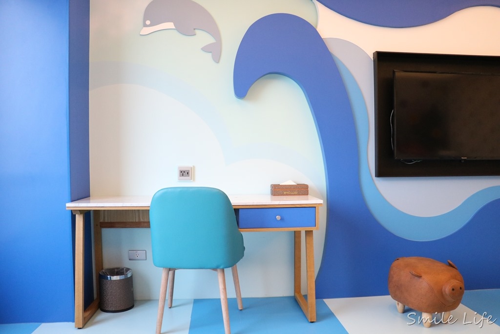 這次入住的海洋房,房內滿是療癒藍海動物環繞