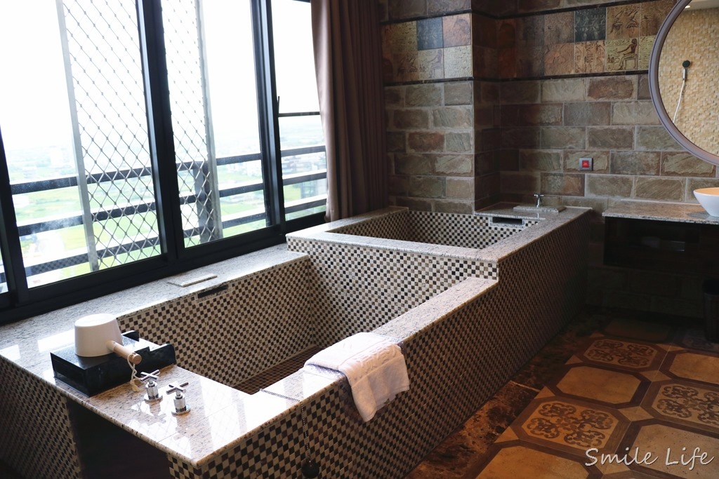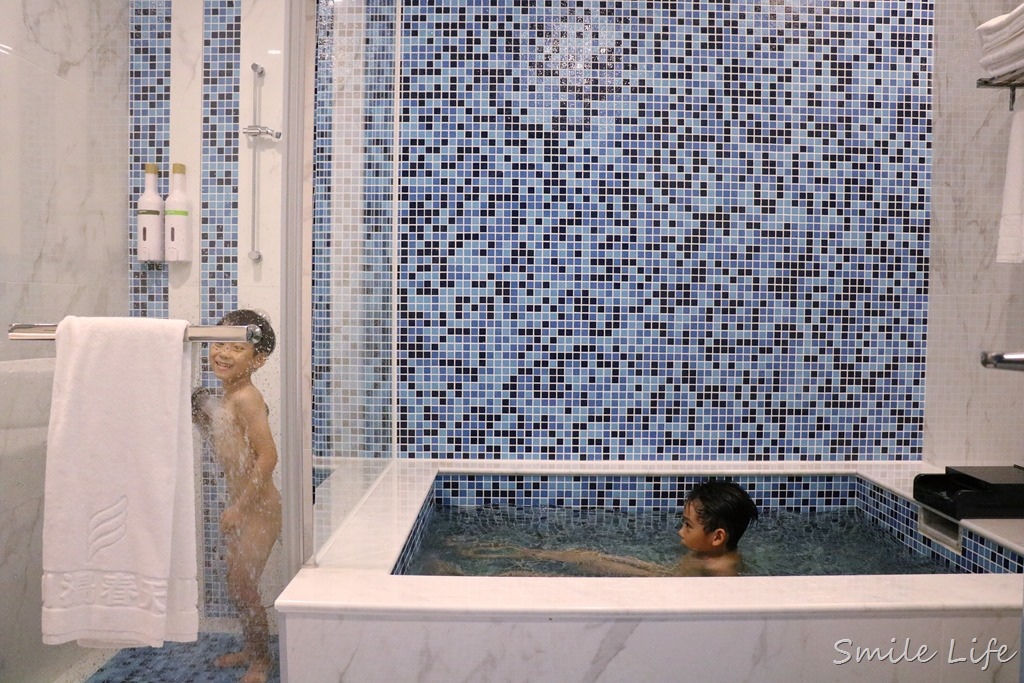 白天在湯池泡不過癮,每間房內都有超大浴池,一家四口一起泡都沒問題