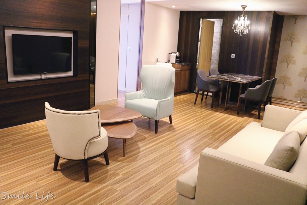不僅有舒適加大雙人床、還有獨立客廳、雙電視、餐廳,超豪華