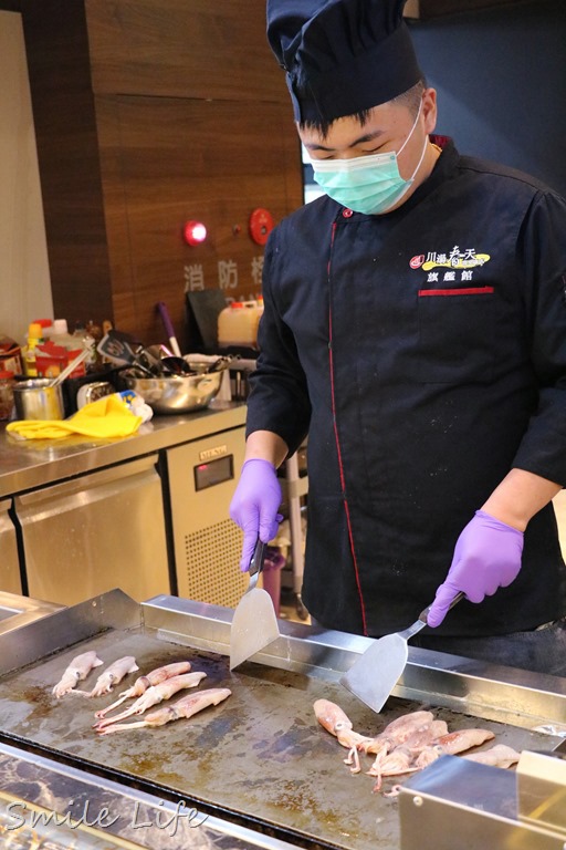 迷你寶一個晚上在這裡站了3次,就為了等師傅現場烹調的海味透抽