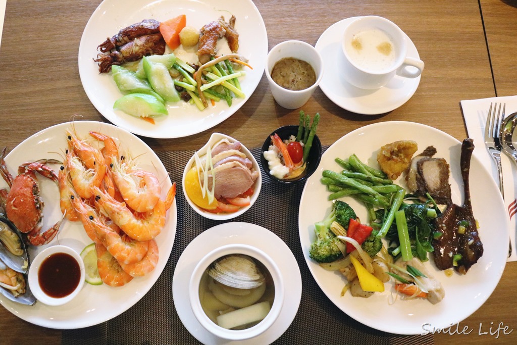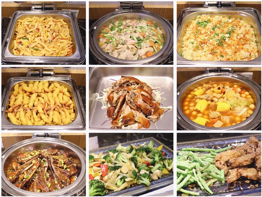 義大利麵、櫻花蝦炒飯、櫻桃鴨、溫泉空心菜、豬肋排、各式海鮮、蔬食應有盡有
