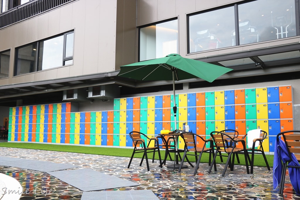 看看這置物櫃排場,免投幣房客免費使用,還有提供半露天休憩區