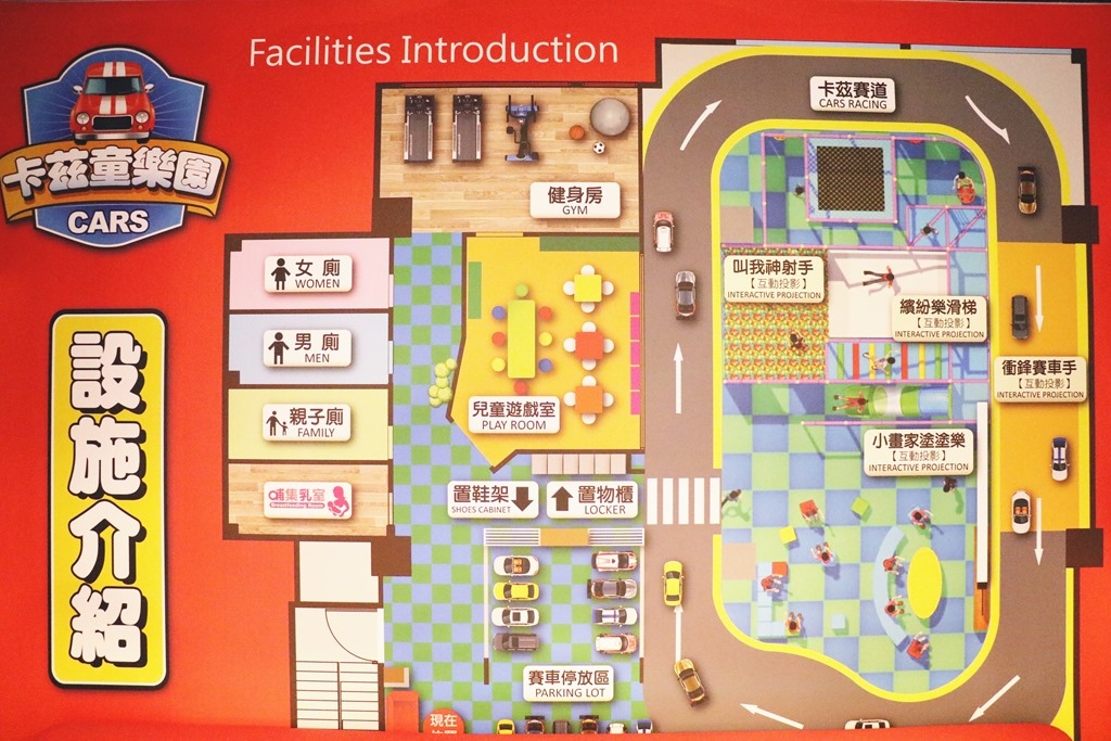 舒適且安全的遊樂環境,空間規畫豐富,色調繽紛活潑,也有提供置物櫃