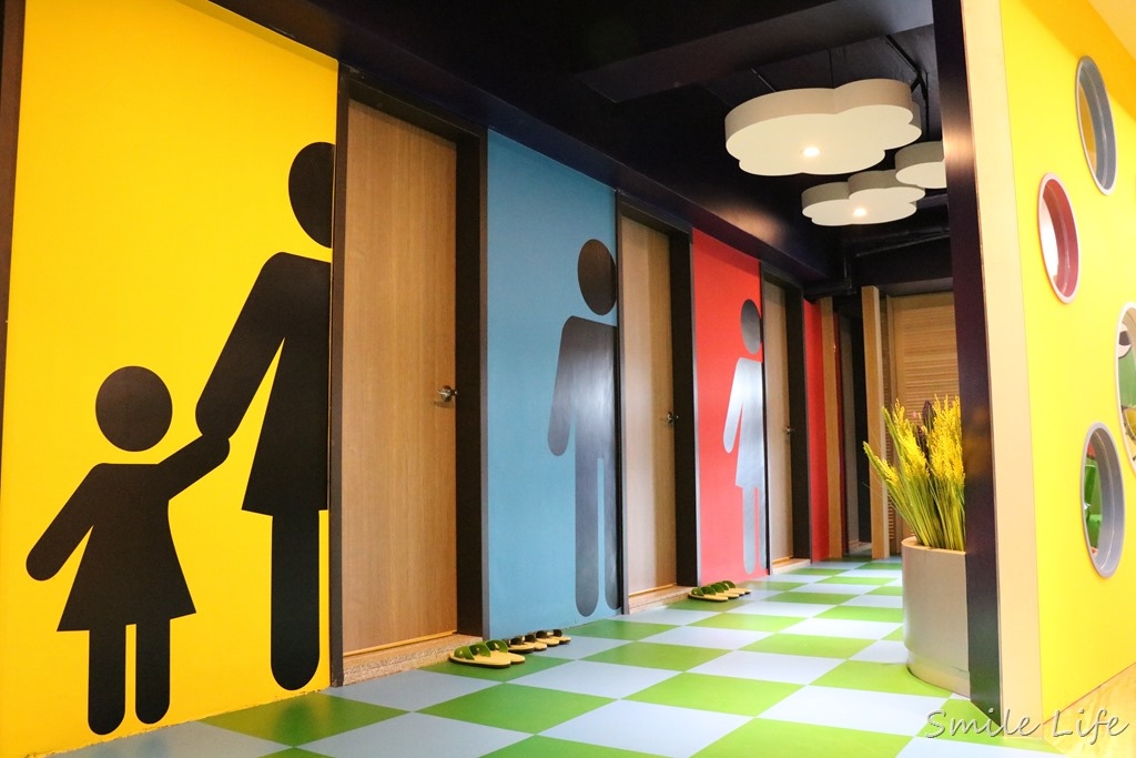 很可愛以色系分區的廁所入口,還有貼心哺乳室‥